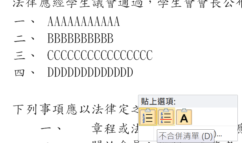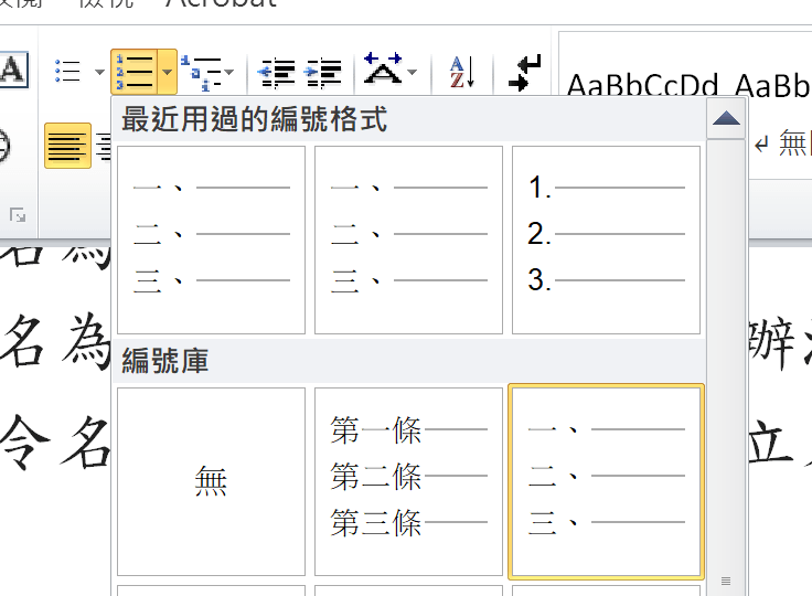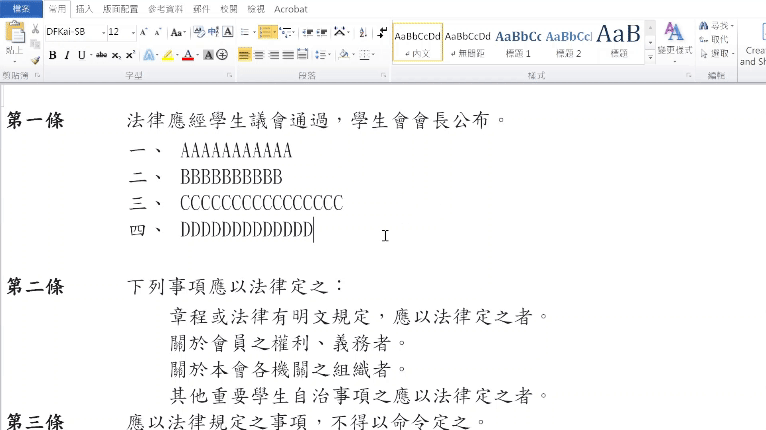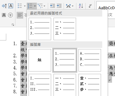 接著開一個新的word檔案,重頭開始排正式版。先把內文放進去,把內文處理好再加章節。接著打開隨便一種編號。